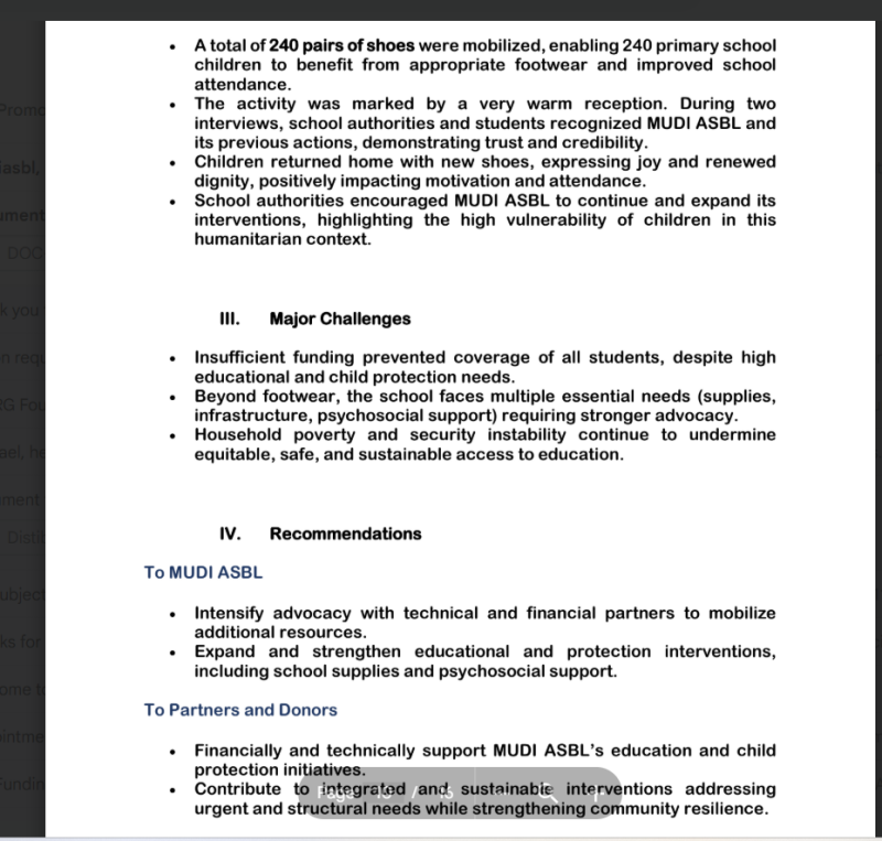 MUDI Asbl has carried out numerous actions in 2024 in favor of the most vulnerable populations.